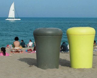 The beaches of Barcelona are installed with pairs of waste disposal bins [Bina] on the sand, which permit two types of selective waste collection: that of containers, which represent approximately 75% of the total waste collected and which must be deposited in the yellow bins, and that of other waste products which must be deposited in the grey bins. There are also containers for selective collection and can crushing machines on the Passeig Marítim. At information points, beach users may request plastic ashtrays to dispose of cigarette butts, as well as dried fruit shells, chewing gum and other small waste products.