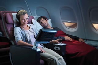 Features: Fully-flat Skybed, in flight bar, advanced in flight entertainment, choice of meals designed by Neil Perry's Rockpool Group, noise cancellation headset.