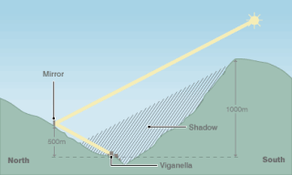 The mayor, Pierfranco Midali, worked with architect Giacomo Bonzani, to come up with a plan to bring the sun to Viganella: place a mirror high up on the northern slope to reflect sunlight down onto the town.