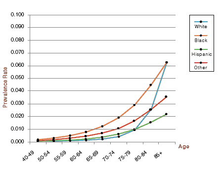 In order of frequency the leading causes were cataract, uncorrected refractive errors (near sighted, far sighted, or an astigmatism), glaucoma, and age-related macular degeneration. In 1987, it was estimated that 598,000 people in the United States met the legal definition of blindness. Of this number, 58% were over the age of 65. In 1994-1995, 1.3 million Americans reported legal blindness.