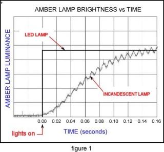 They offer extreme vibration resistance, long life and fast switching times, LEDs have been used for automotive high-mounted brake lights and truck and bus brake lights and turn signals for some time, but many vehicles now use LEDs for their rear light clusters. The use of LEDs also has styling advantages because LEDs are capable of forming much thinner lights than incandescent lamps with parabolic reflectors. The significant improvement in the time taken to light up (perhaps 0.5s faster than an incandescent bulb) improves safety by giving drivers more time to react. It has been reported that at normal highway speeds this equals one car length increased reaction time for the car behind.