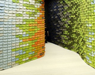 Originally conceived for our (Kvadrat) Stockholm showroom by Ronan and Erwan Bouroullec, these textile walls are constructed with individual foam fabric tiles which connect together using an ingenious folding system.